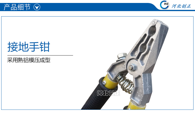 6、產(chǎn)品配置:軟銅線長度及截面積可根據(jù)實(shí)際定制,接地端線夾可調(diào)換為鉗口接電夾。
